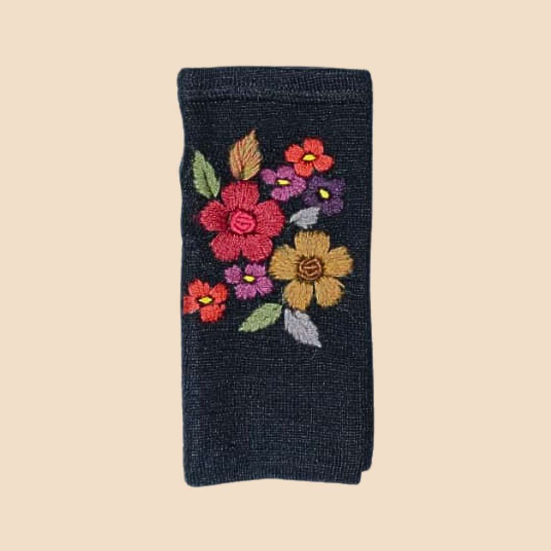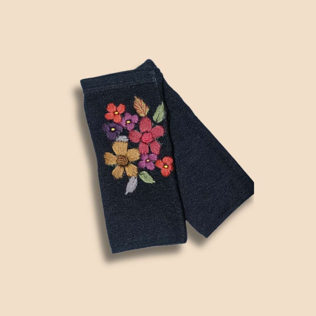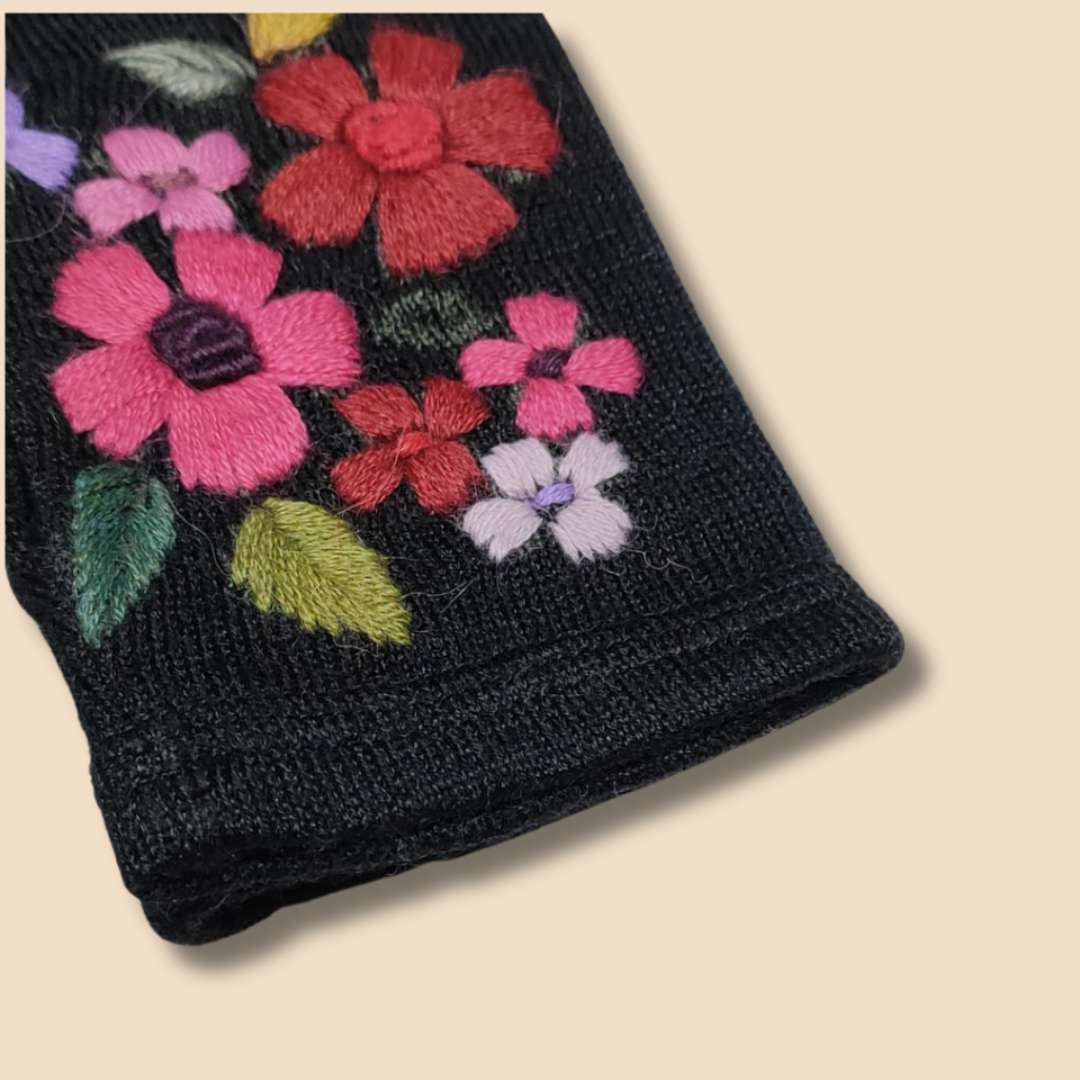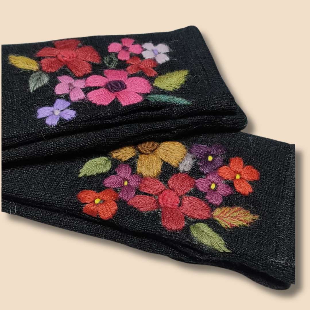 Cada par de mitones destaca por sus bordados a mano, elaborados cuidadosamente por artesanos de los Andes peruanos. Estos detalles no solo embellecen la prenda, sino que también transmiten la herencia cultural de técnicas textiles transmitidas de generación en generación. Debido a su elaboración artesanal, los colores de las flores bordadas pueden variar ligeramente; sin embargo, siempre se mantienen en tonos naturales y combinaciones armoniosas.
